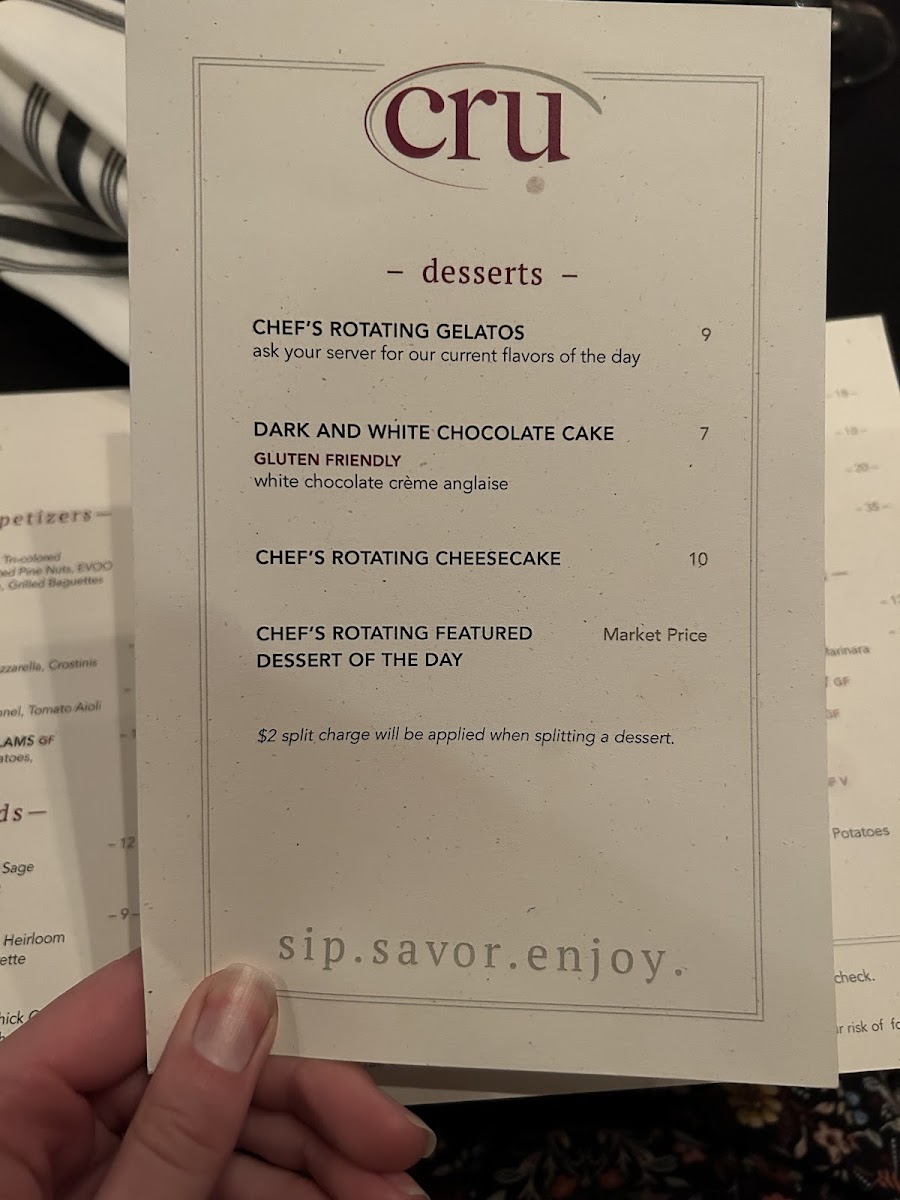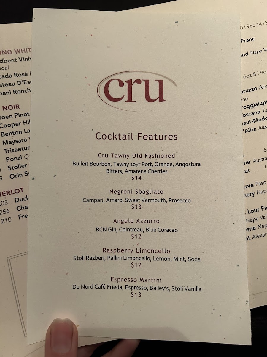 Welcome to Cru Restaurant & Wine Bar, a hidden gem nestled in Nisswa, MN. Located at 23521 Nokomis Ave, this intimate basement venue offers a cozy ambiance perfect for any gathering—be it a bachelorette party or a peaceful dinner for two. The menu is an exquisite blend of culinary creativity and classic flavors, featuring standout dishes like chicken Milanese, filet mignon, and the decadent lobster gnocchi. Dive into their enticing offerings, where each plate promises perfection, from the robust venison tenderloin to the creamy coconut curry beef filet. The extensive wine list pairs beautifully with each dish, showcased elegantly in their stunning wine cellar. Cru also hosts monthly tasting events, enhancing your dining experience through insightful wine pairings. Impeccable service, coupled with exceptional food, makes Cru not just a meal but a memorable culinary journey. Come savor the best of the Brainerd Lakes area!